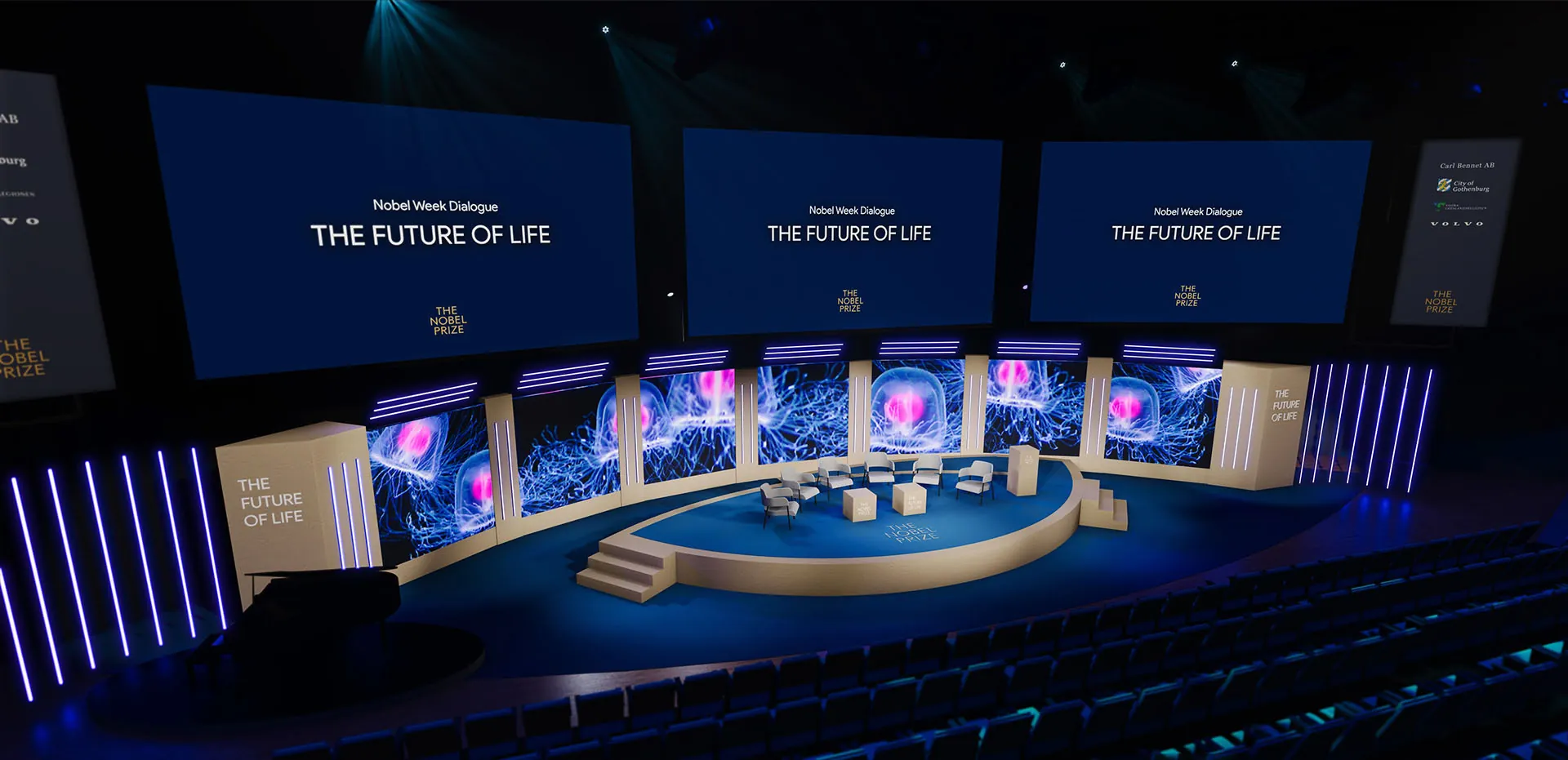 We do both. EDGE's set designers and designers can develop the entire creative concept – stage layout, lounge, entrance zone and branding surfaces – from your brief, your goals and your budget. If you already have an idea or reference material, we help you refine and realise it. Visualisation is the tool that communicates the design to all parties involved.